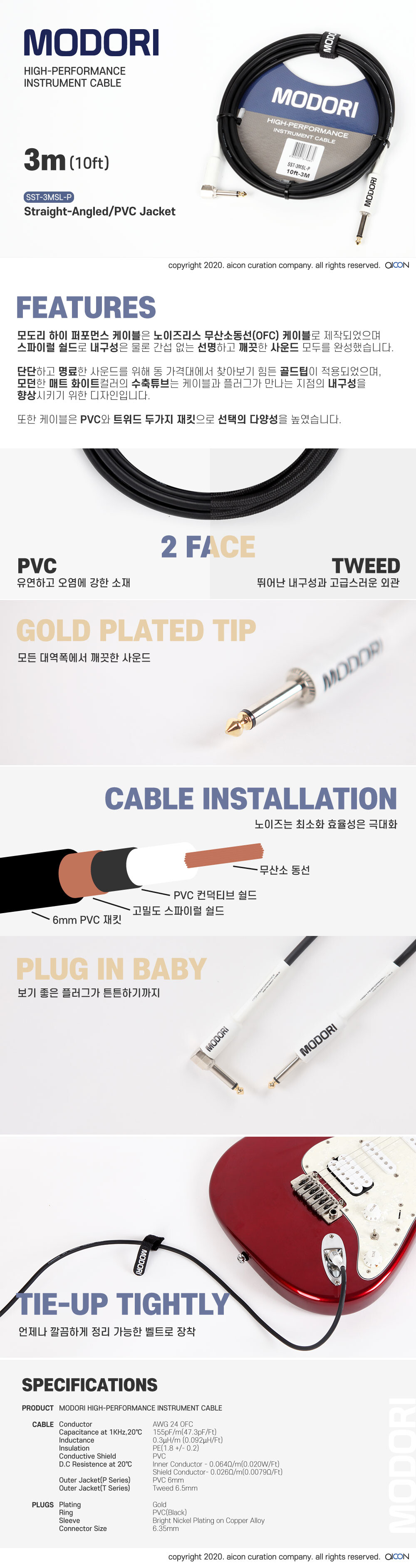 MODORI 기타 베이스 키보드 케이블 SST-3MSL-P