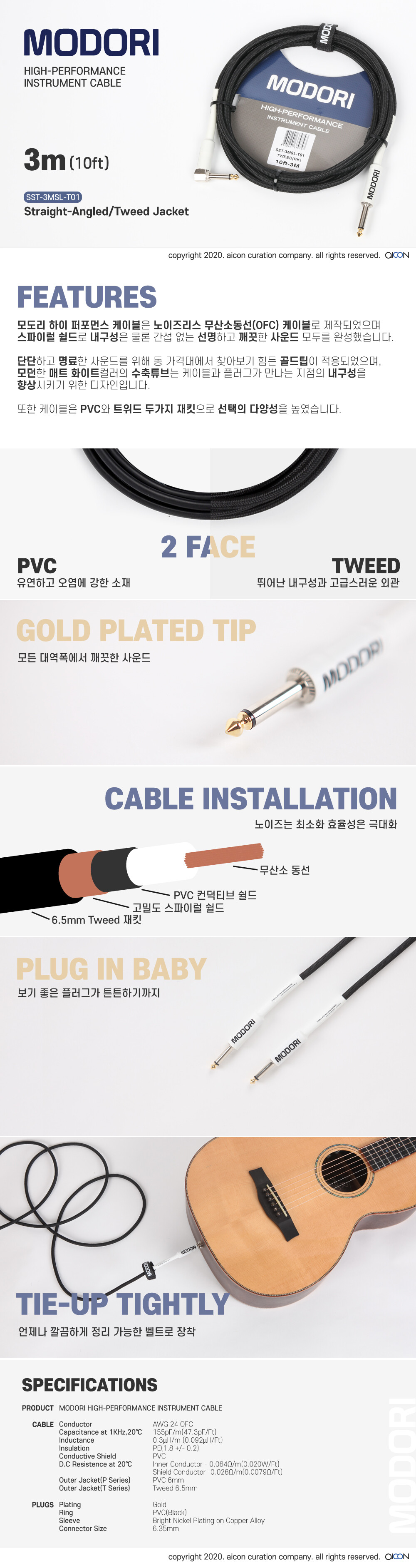 MODORI 기타 베이스 키보드 트위드케이블 SST-3MSL-T01