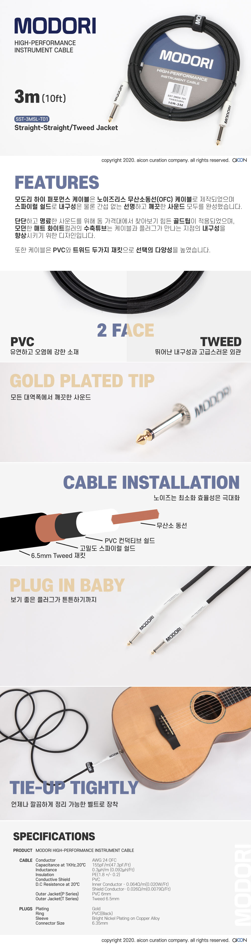 MODORI 기타 베이스 키보드 트위드케이블 SST-3MSS-T01