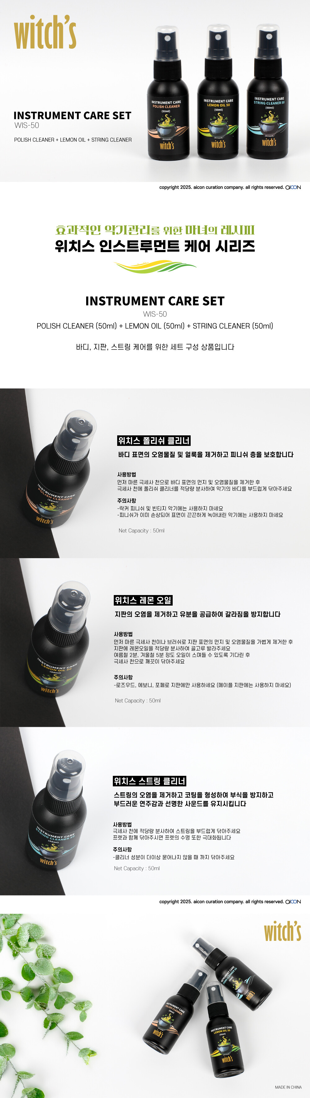 위치스 폴리쉬 클리너 / 레몬오일 / 스트링클리너 세트 (WIS-50)
